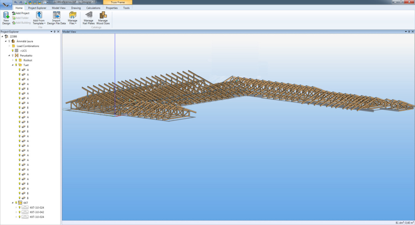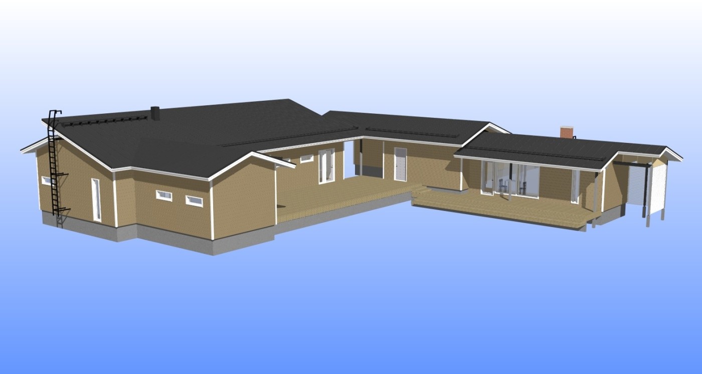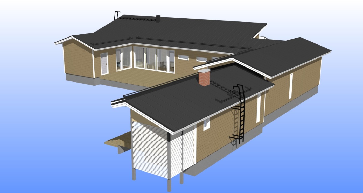 Town house in Finland. Elements and roof structures are from Jukkatalo Oy.